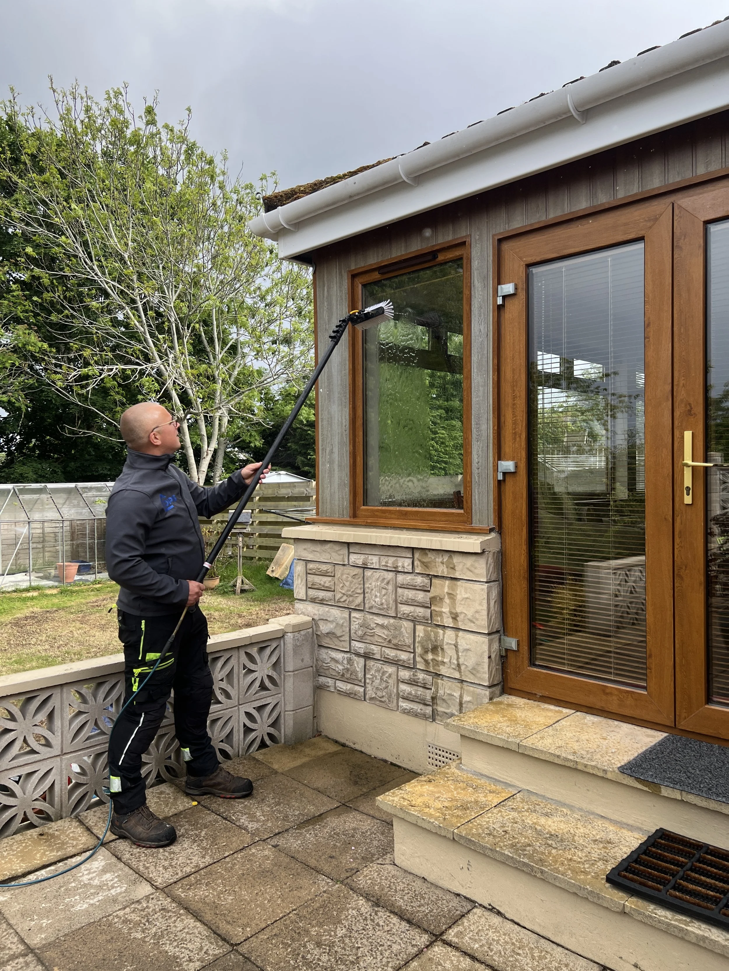 Yes – we use water-fed pole systems and safety equipment to reach upper floors without ladders.